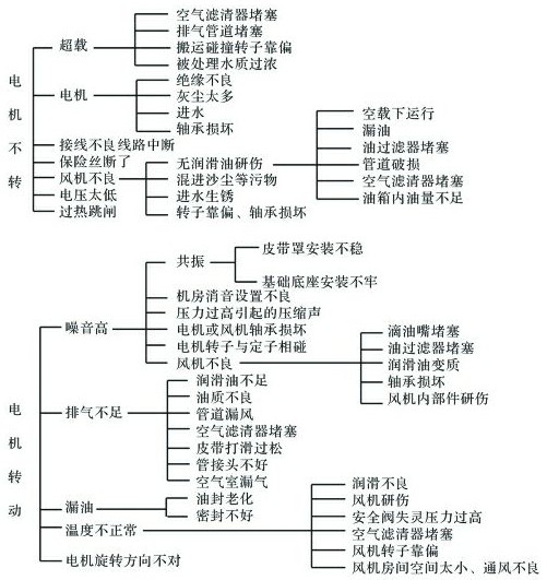 | 2:無(wú)潤(rùn)滑油 | 2:檢查供油系統(tǒng)及補(bǔ)充油量 | |